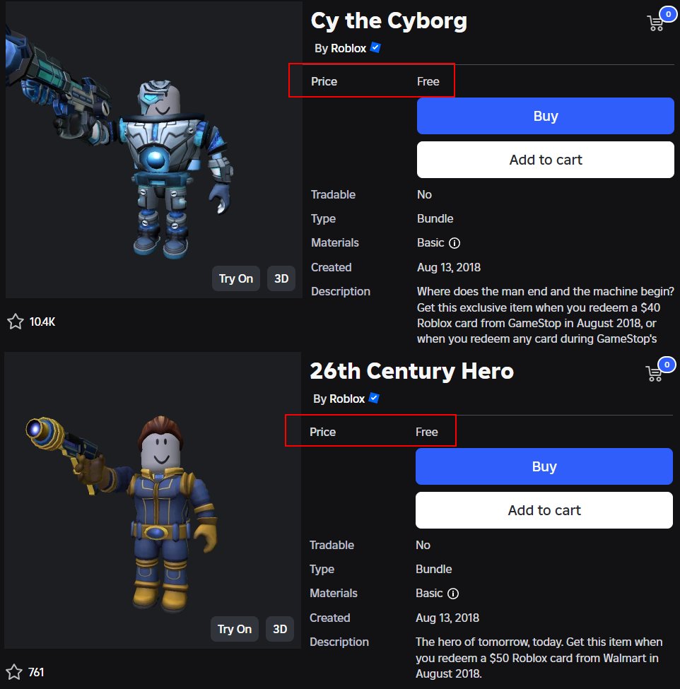 两个 Roblox 捆绑包显然刚刚免费出售。Cy the Cyborg 和 26th Century Hero。